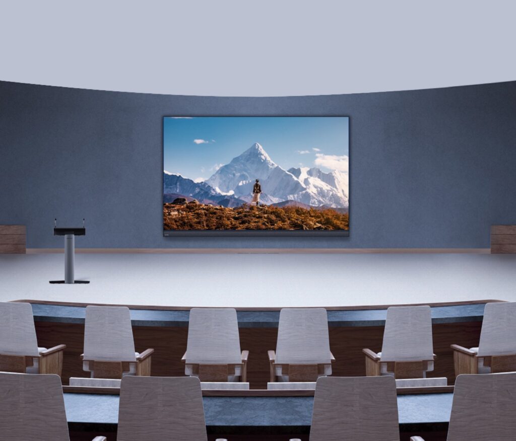 Complete room systems with devices designed to accommodate 18+ seats for formal presentations, gatherings, and collaboration across work groups.